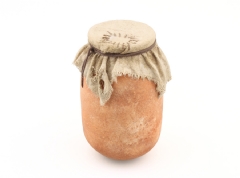 Orza de barro realizada a mano en torno alfarero y decorada en nuestro taller de Escenografías para el Belén.