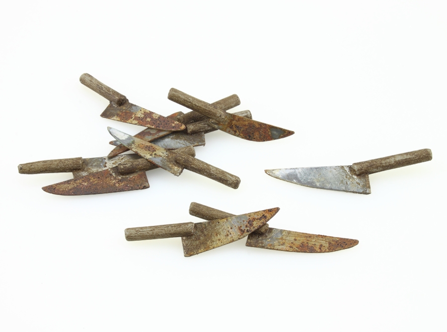 Cuchillo rústico de aspecto antiguo en miniatura para decoración de belenes, dioramas, maquetas y casas de muñecas.