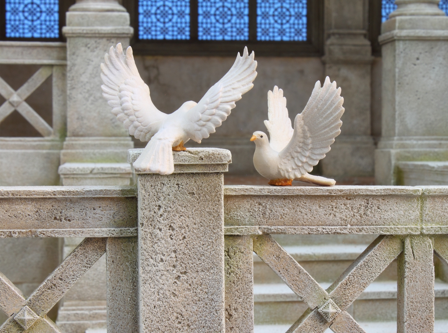 Nota: Todas las palomas son blancas, pero la policromía de las piezas puede variar de unas a otras, y contener toques grises, pardos, azulados o rosáceos en los extremos de las plumas. Puede indicar preferencias en el apartado de "Observaciones" de su hoja de pedido. No obstante, se enviarán según disponibilidad.
