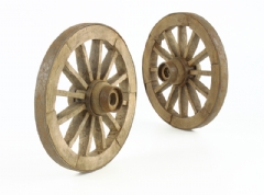 Rueda para carro de 12 radios, realizada de forma totalmente artesanal, con un acabado de aspecto envejecido exclusivo, muy realista.