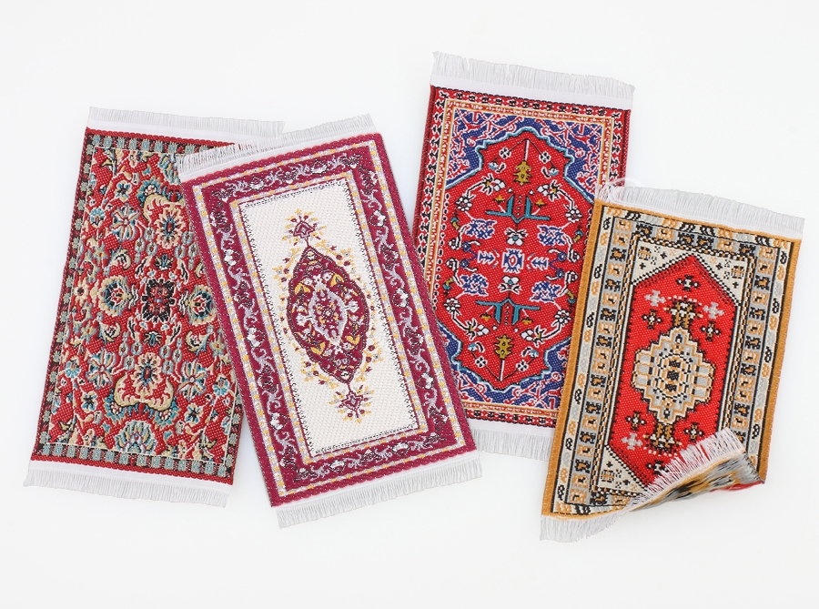 Pack 4 alfombras pequeñas con flecos (8,5x4,5 cm.)