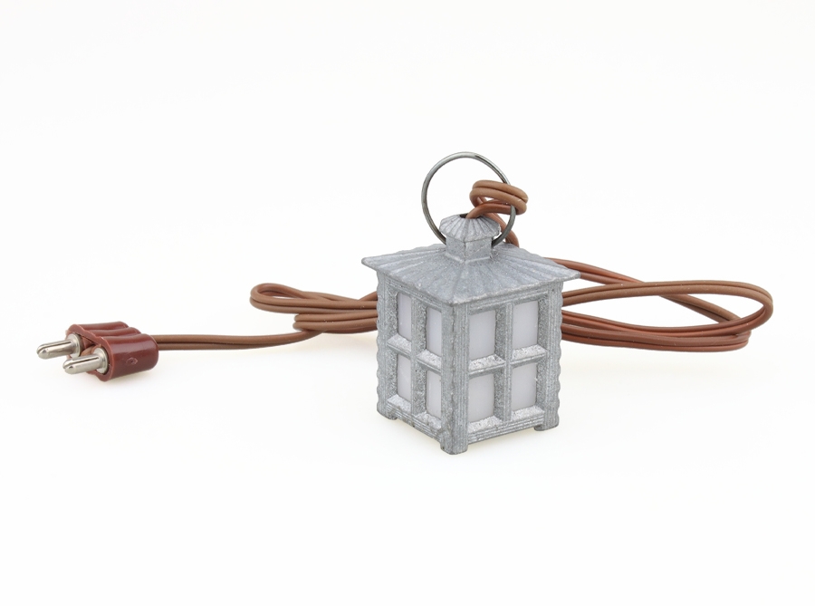 Farol de metal con luz para el belén. Instalación completa con cable y clavija.