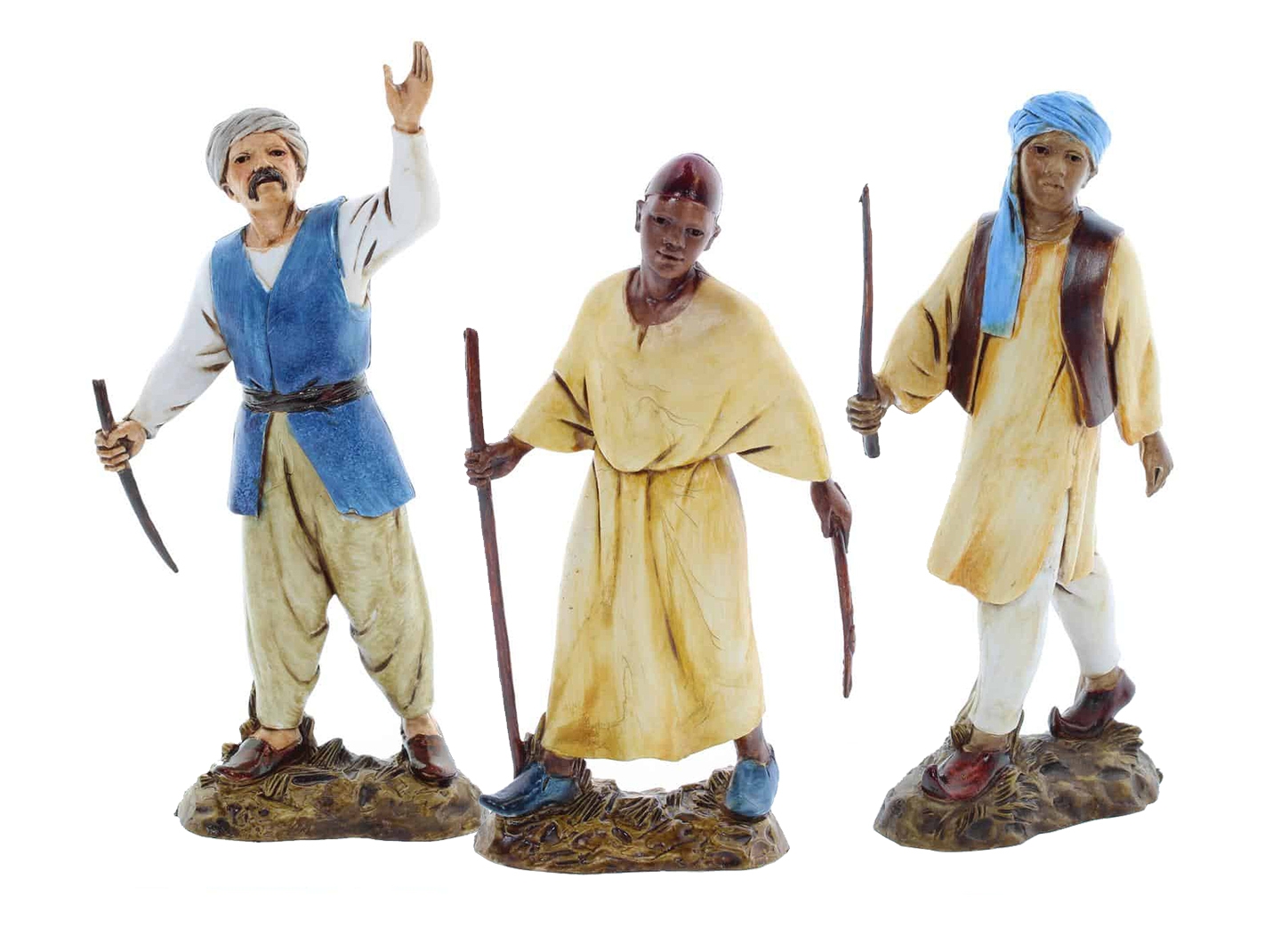 Grupo 3 pajes árabes para conducir los camellos de los Reyes Magos, reproducidos mediante un procedimiento de moldeo por inyección, y pintados a mano en los talleres italianos de Moranduzzo.