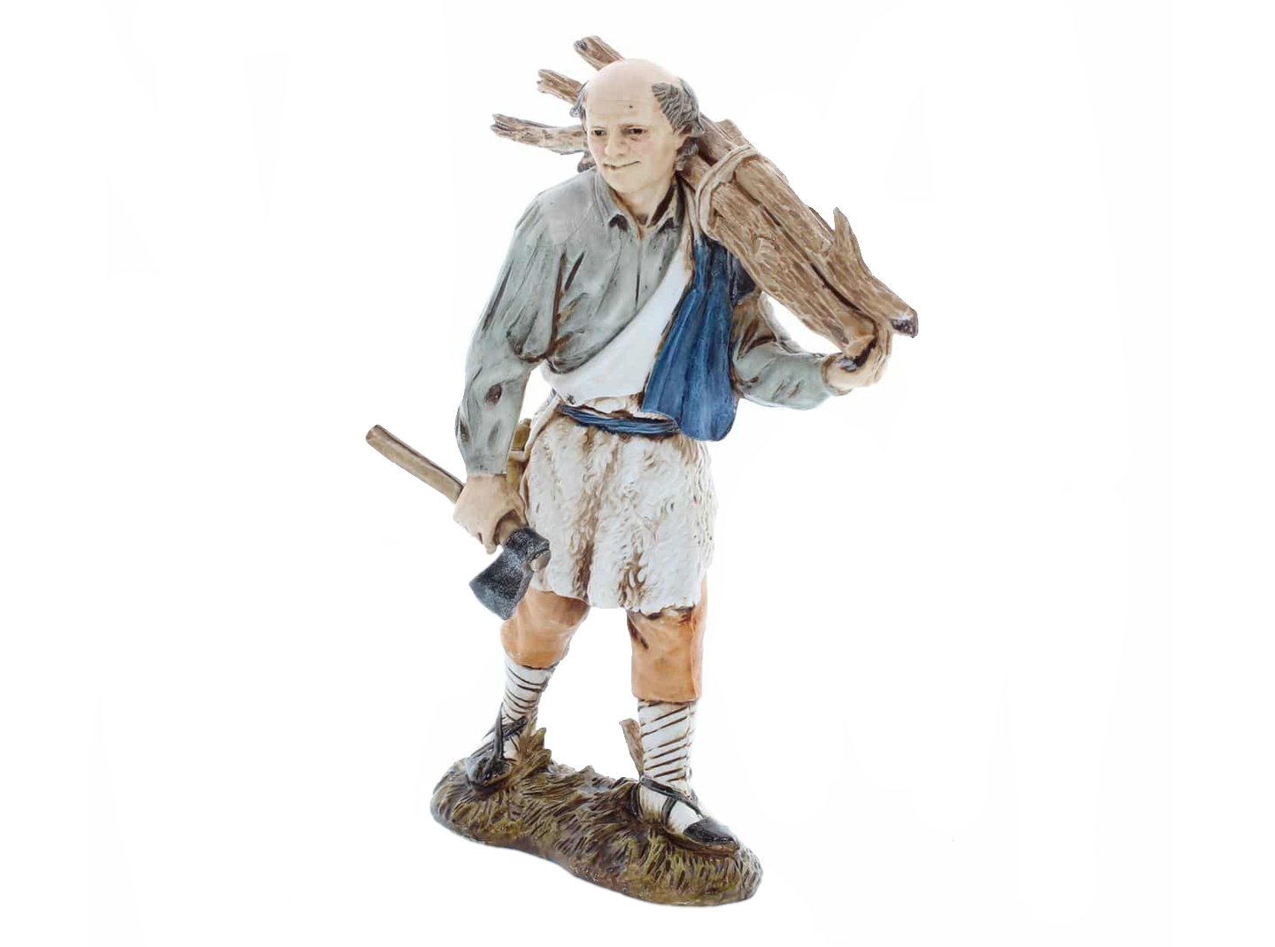 Figura del leñador de la Colección Landi, pintada a mano en los talleres italianos de Moranduzzo.