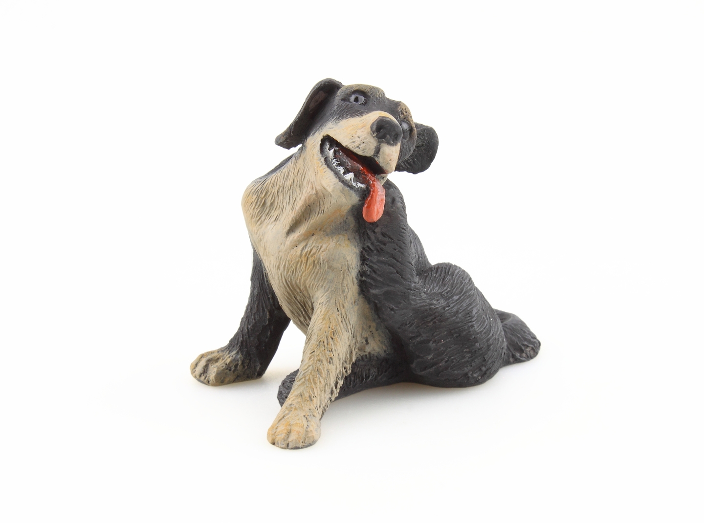 Simpática figura de un perro rascándose que reproduce una escultura creada por Montserrat Ribes, moldeada mediante un proceso totalmente artesanal, pintada a mano en el taller de la propia escultora, y que lleva su firma grabada (se acompaña de Certificado de Autenticidad).